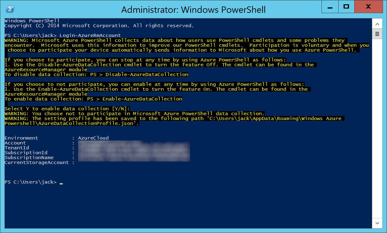 Notes: The above script takes into account that you are deploying against standard storage. You may need to edit the above script if you want to deploy to premium storage as diagnostics data does not support being deployed to a Premium Storage account as of 6/27/2016.