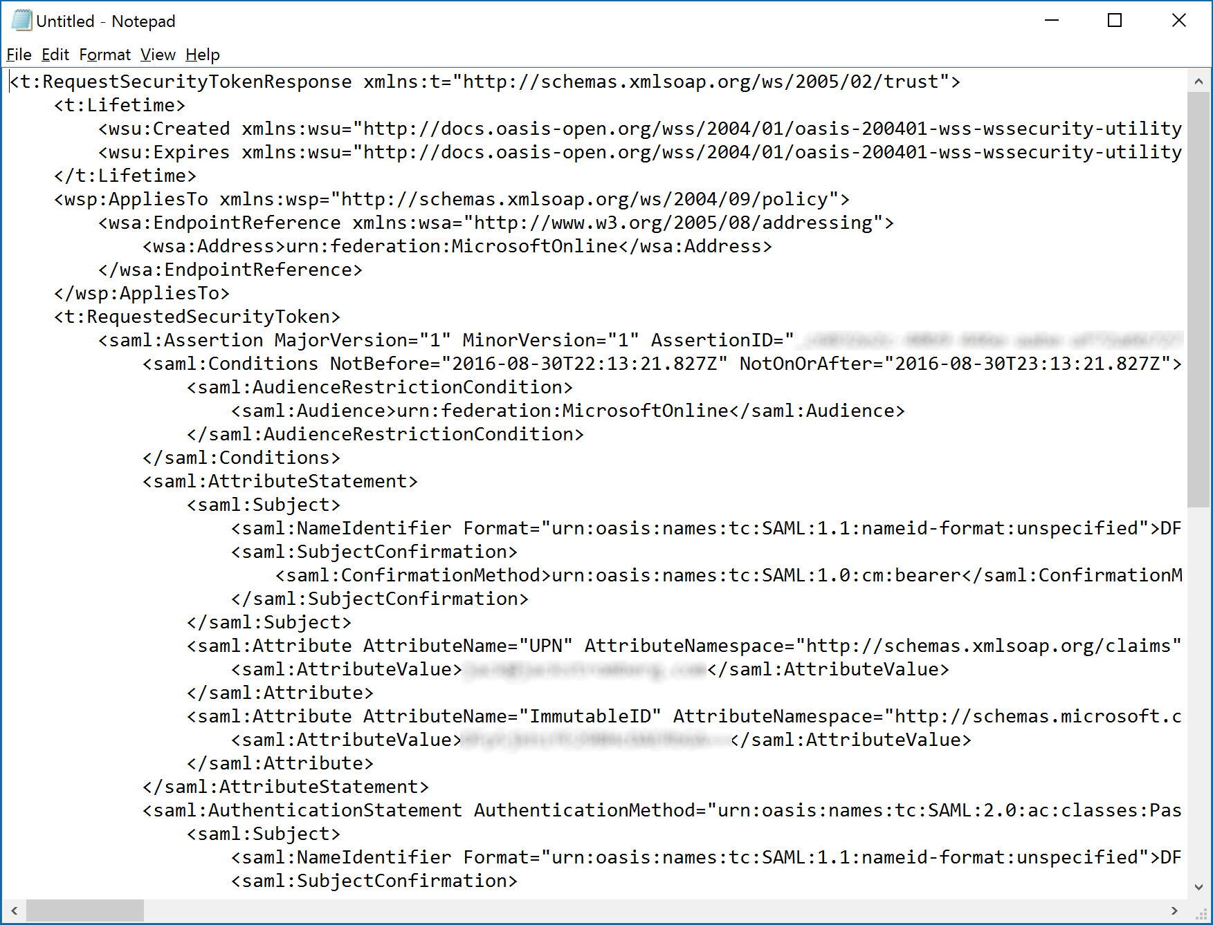 Going into the claim and how it works is outside the scope of this tutorial, but as you can see in the last screenshot above we have the raw SAML token we will send to the relying party trust to consume. At this point, the vendor can be involved to help troubleshoot any values or attributes that are in an incorrect format.