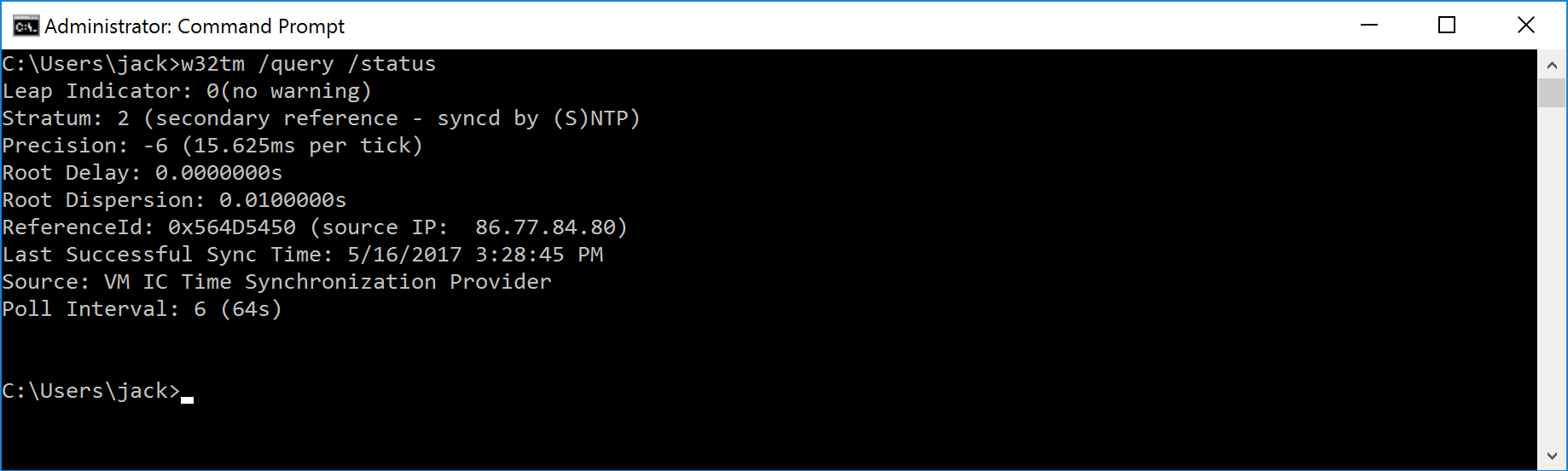 Validate that your machine is synchronized to the Hyper-V Time Provider