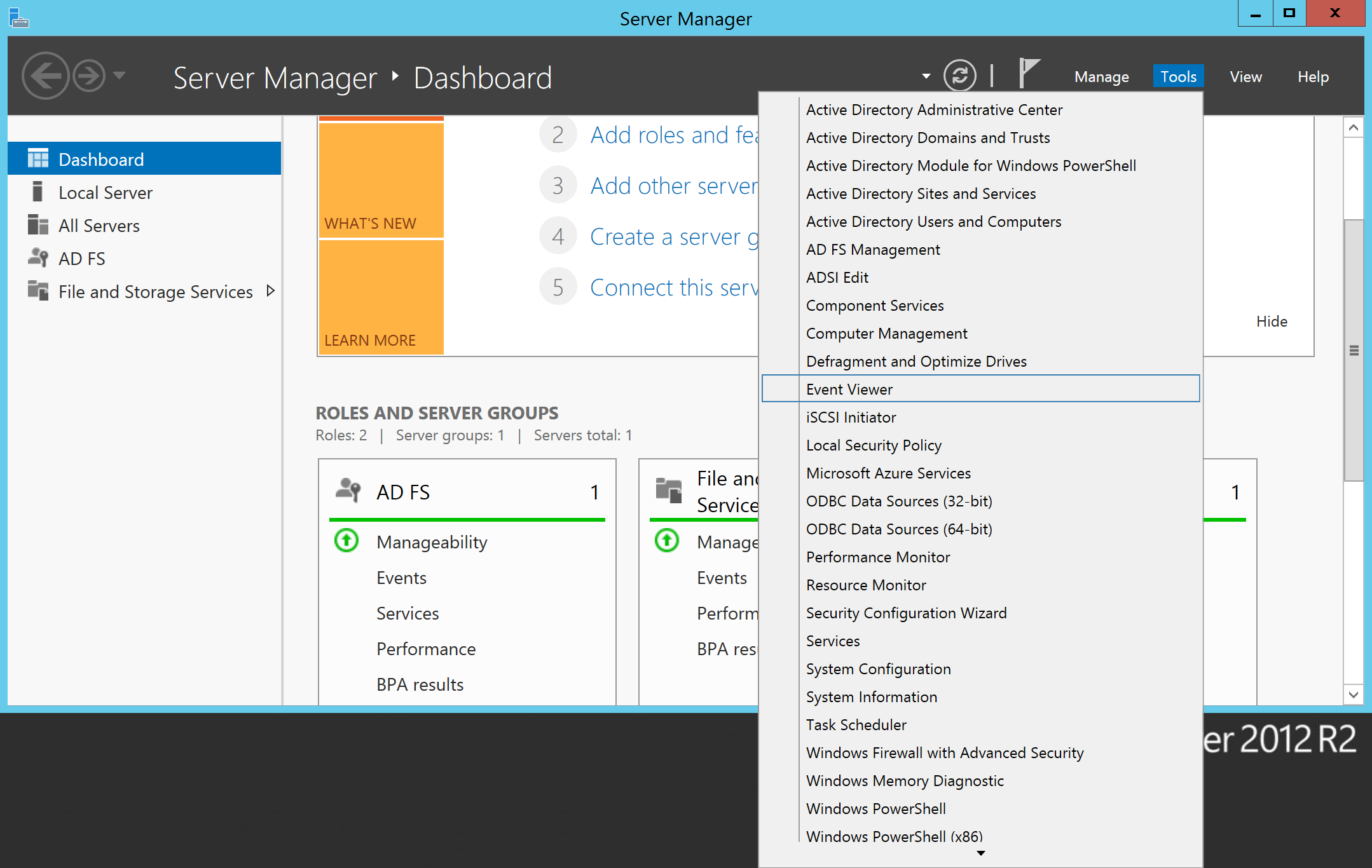 - Login to one of your ADFS servers that you believe will be authenticating the end users