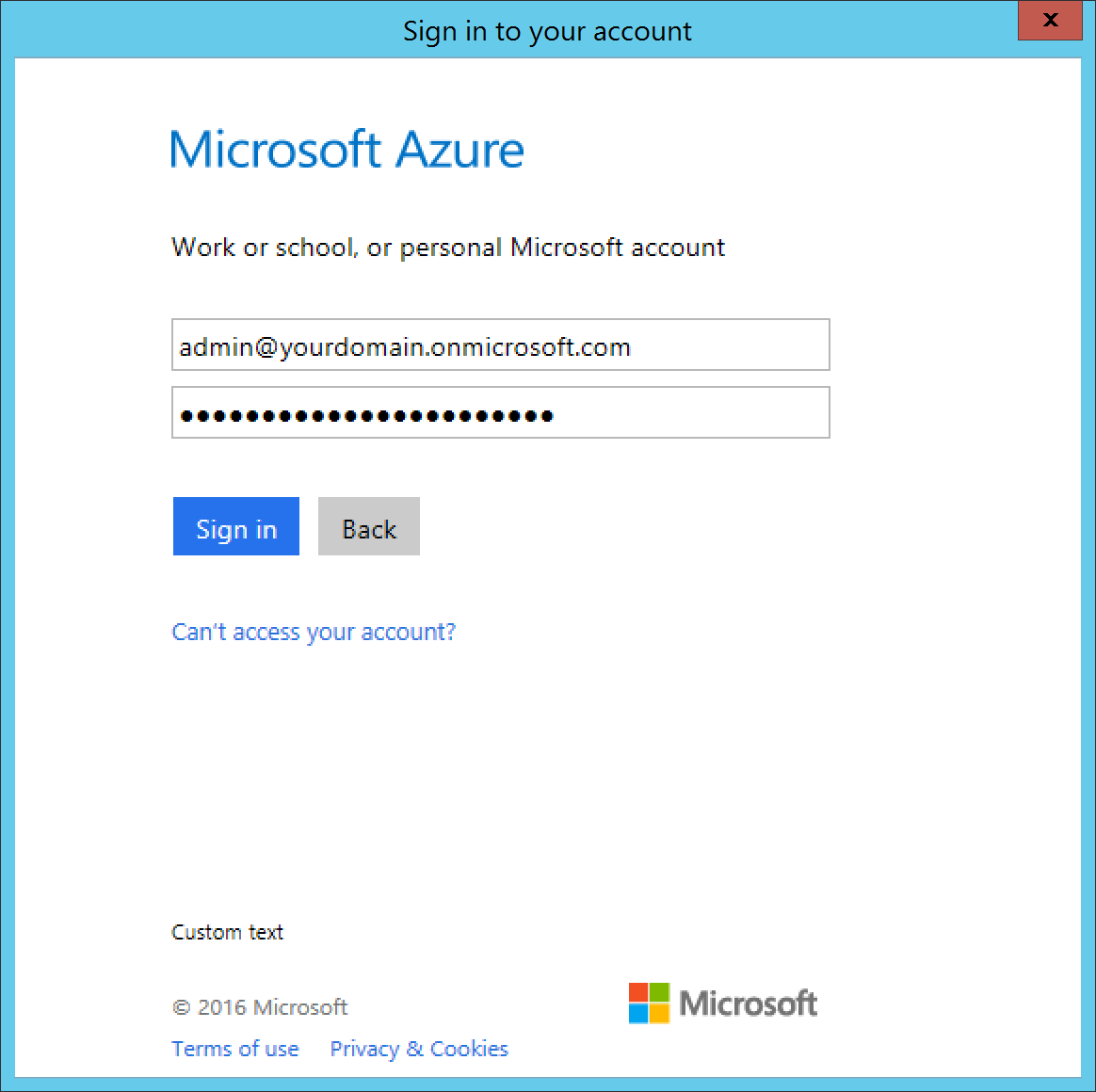 - Type in your Global Administrator credentials to register the agent to your Azure AD tenant and click Sign in