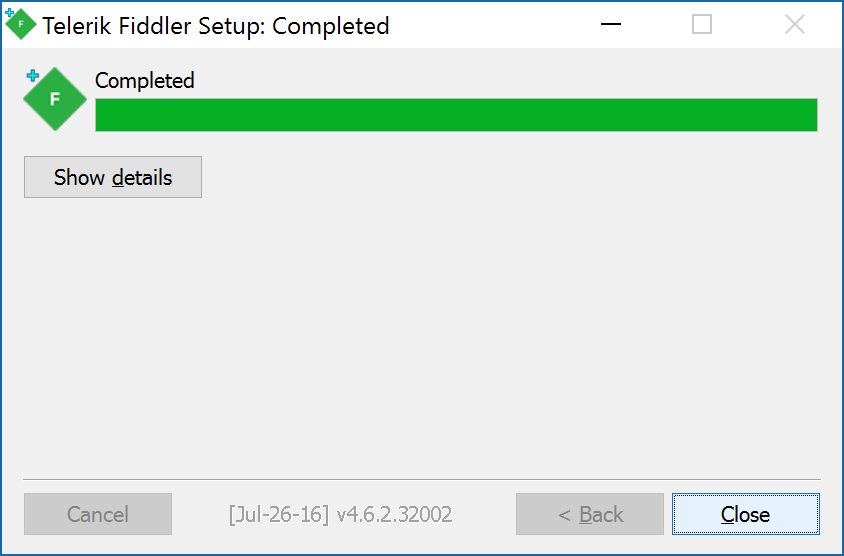 - Note: This download Fiddler's root certificate to allow us to intercept SSL traffic for debugging purposes