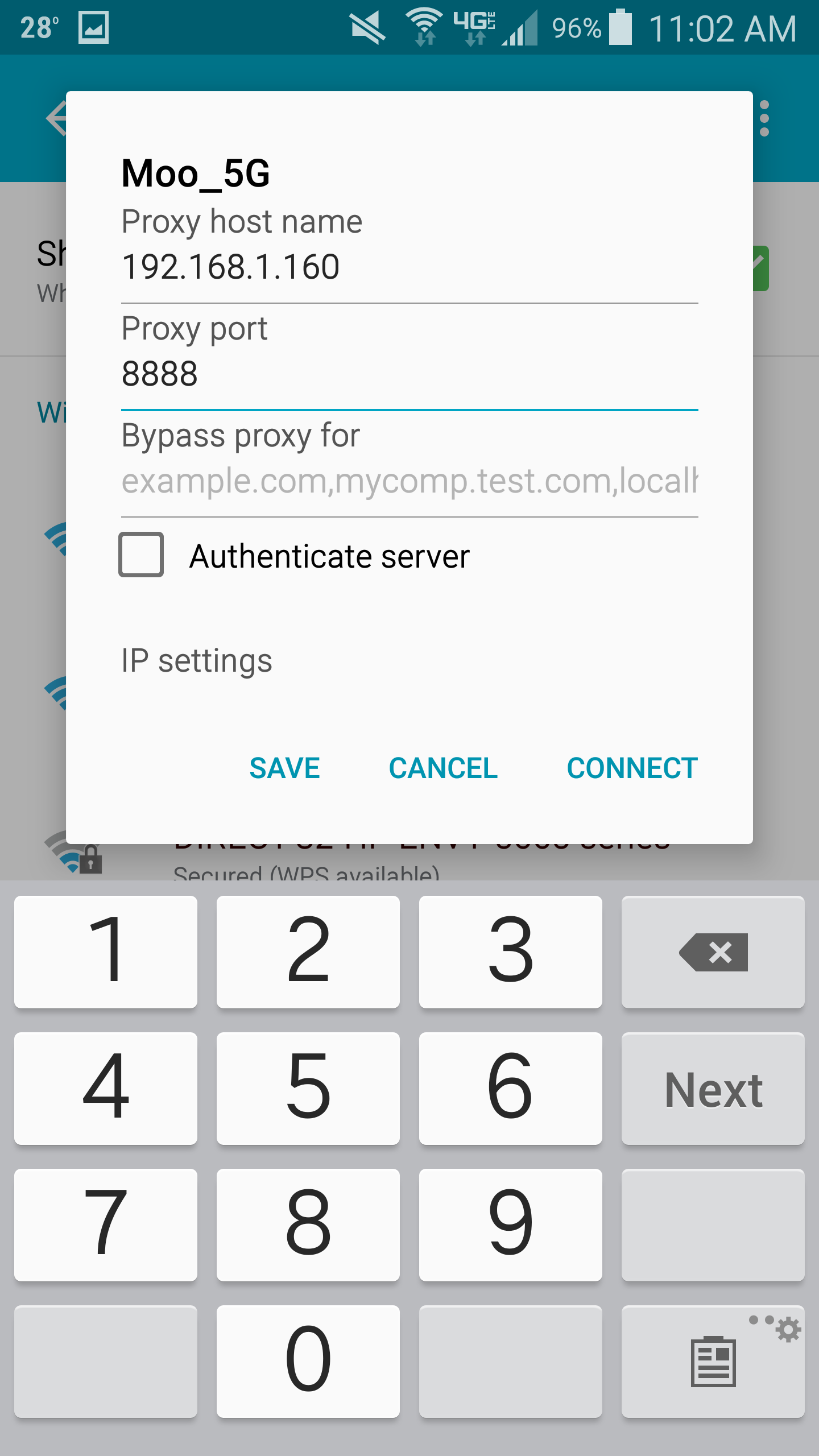 - Type in the IP address gathered from Fiddler for the Proxy host name and set the Proxy Port to 8888 and click Save