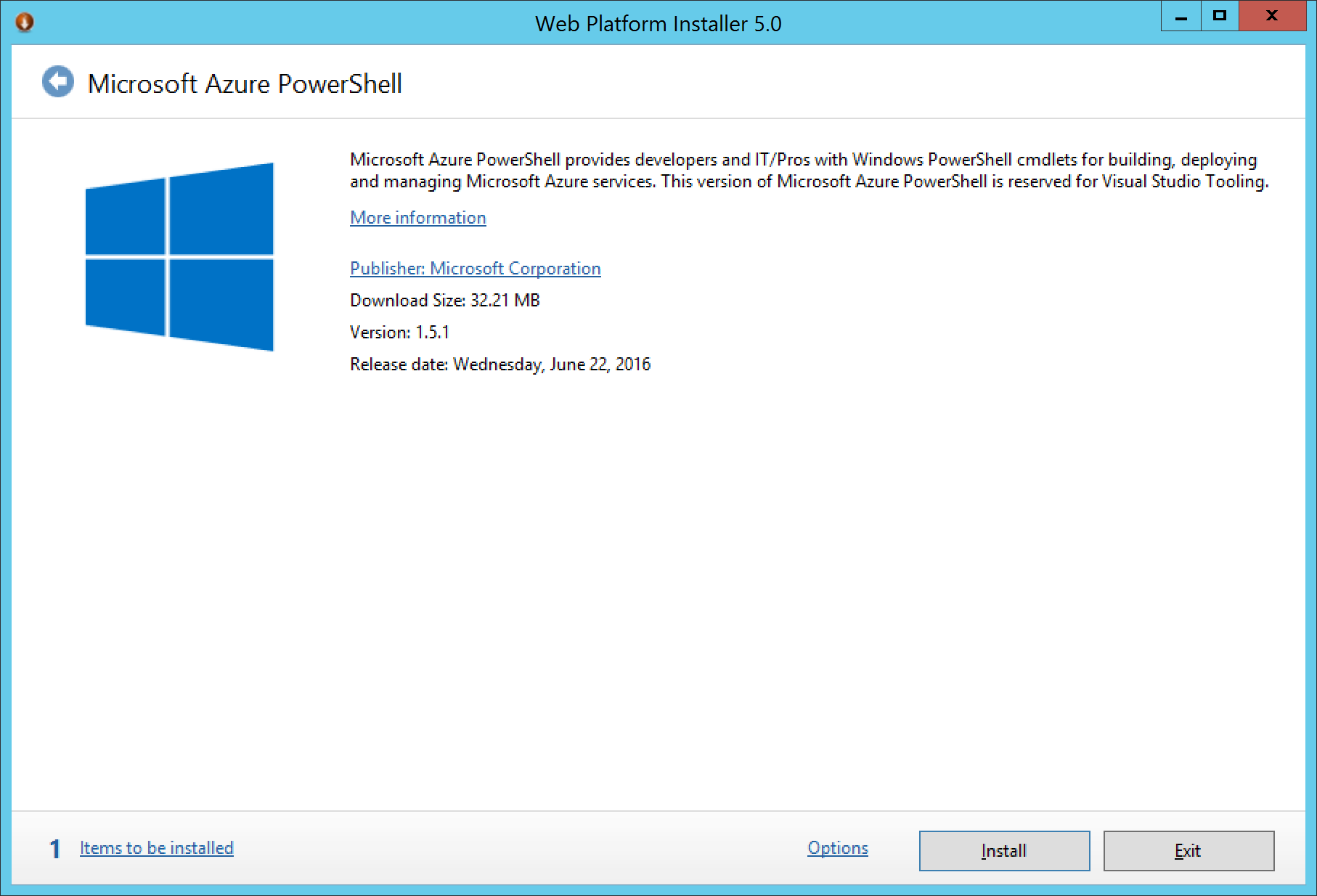First, you will need the latest Azure PowerShell Modules. These can be downloaded for free from the Azure website. If you are new to Azure, this will be a link to the Web Platform installer, in which the link below should automatically select the Azure PowerShell modules to be downloaded. You do not need the Command Line installer if prompted, only the Azure PowerShell Modules.