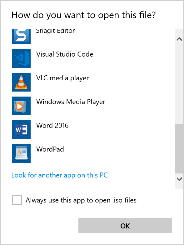 Select More apps and scroll to the bottom and select Look for another app on this PC.