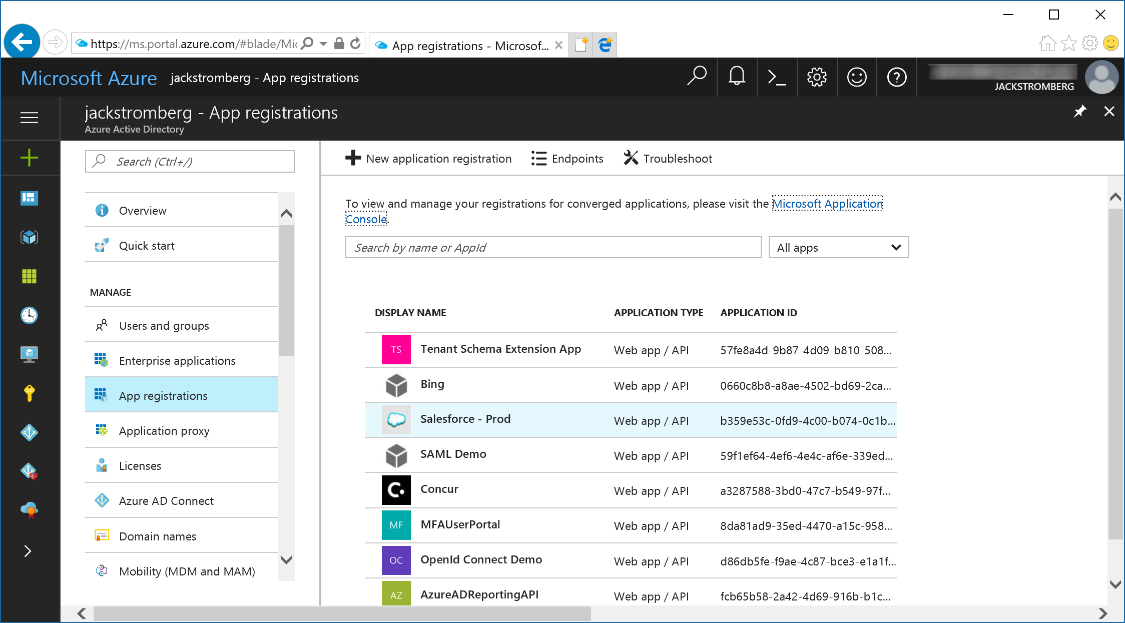 Please note that if you do browse back to Enterprise Applications, today the portal will only reflect one-URL as of 7/24/2017.